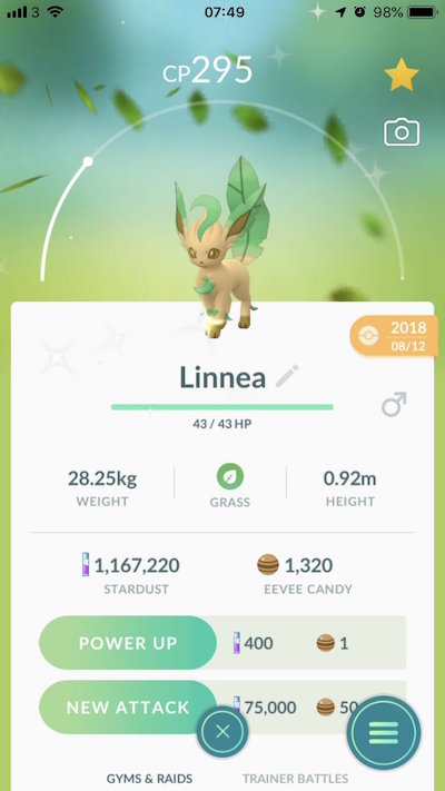 - Eevee si evolverà in Leafeon soprannominandolo Linnea prima dell’evoluzione
