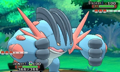 MegaSwampert, la megaevoluzione di Swampert, esibisce un Attacco potenziato e diventa ancora più temibile quando usa la mossa di tipo Lotta Martelpugno. Acquisisce inoltre l’abilità Nuotovelox, che ne raddoppia la velocità sotto la pioggia.
