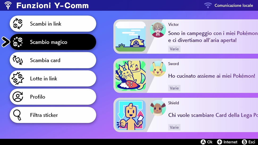 Per eseguire uno scambio magico è necessario essere in possesso di un abbonamento al servizio Nintendo Switch Online. Una volta aperto il menù delle funzioni Y-Comm con il tasto Y e stabilita la connessione a internet con il tasto +, basterà scegliere dal menù a sinistra la voce scambio magico. Dopo aver scelto quale Pokémon scambiare e aver atteso un breve caricamento, verremo associati casualmente a un altro giocatore del mondo, con il quale effettueremo lo scambio magico. Se saremo fortunati potremmo imbatterci, negli orari sopra indicati, in uno dei 60 Chansey della distribuzione.