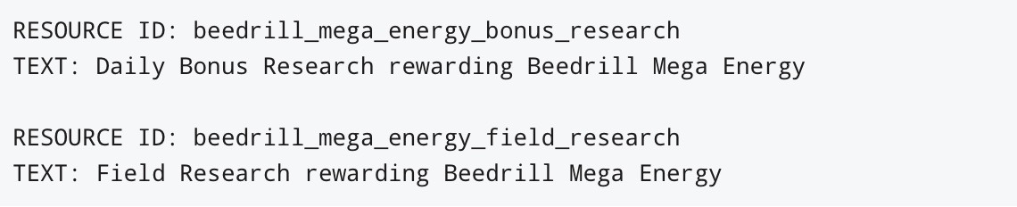Vero oggetto del mistero di questi datamining è l’Energia Mega. Non è del tutto chiaro come verrà gestita all’interno di Pokémon GO, ma è sicuramente fondamentale per le megaevoluzioni dei nostri Pokémon. Sono stati trovati all’interno del codice delle ricerche giornaliere e sul campo in grado di ricompensarci con dell’Energia Mega. Anche i Mega Raid ci ricompenseranno con dell’Energia Mega, che potrà essere posseduta in quantità limitate.
