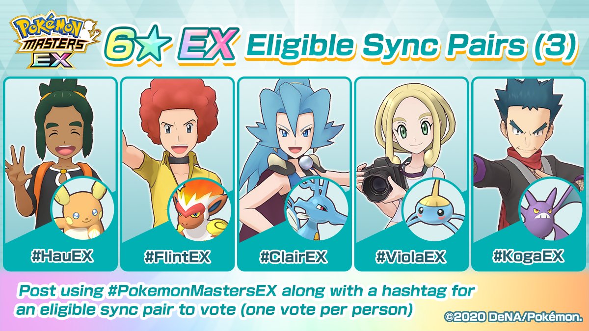 Il sondaggio si svolge su entrambi gli account Twitter ufficiali di Pokémon Masters EX, ovvero tanto su quello giapponese @pokemas_game quanto su quello occidentale @PokemonMasters e si potrà procedere all’espressione delle proprie preferenze fino alle ore 7:59 di lunedì 7 settembre: il vincitore verrà svelato poi con un comunicato a nome del team di sviluppo di casa DeNA.