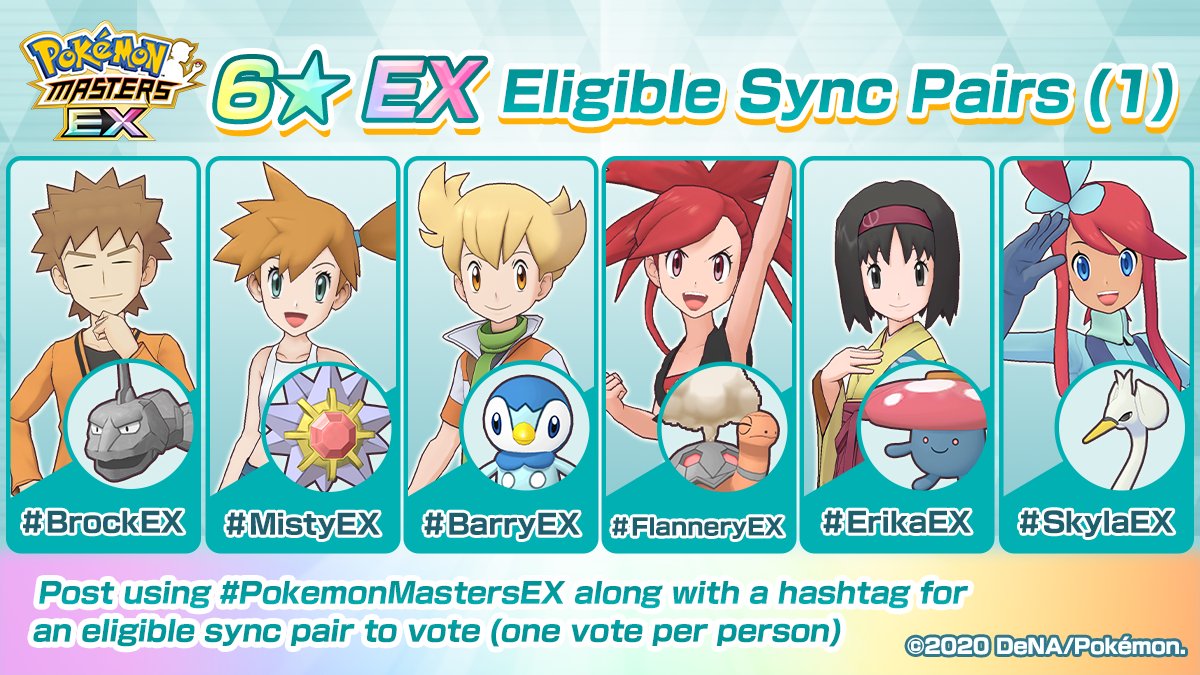 Per poter prendere parte alle votazioni, basterà seguire l’account Twitter ufficiale di Pokémon Masters EX e pubblicare un post sul proprio profilo Twitter personale, utilizzando essenzialmente due hashtag: il primo è #PokemonMastersEX, mentre il secondo dovrà contenere il nome dell’Unità prescelta (un esempio di votazione potrebbe essere il seguente: #PokemonMastersEX #KorrinaEX).
