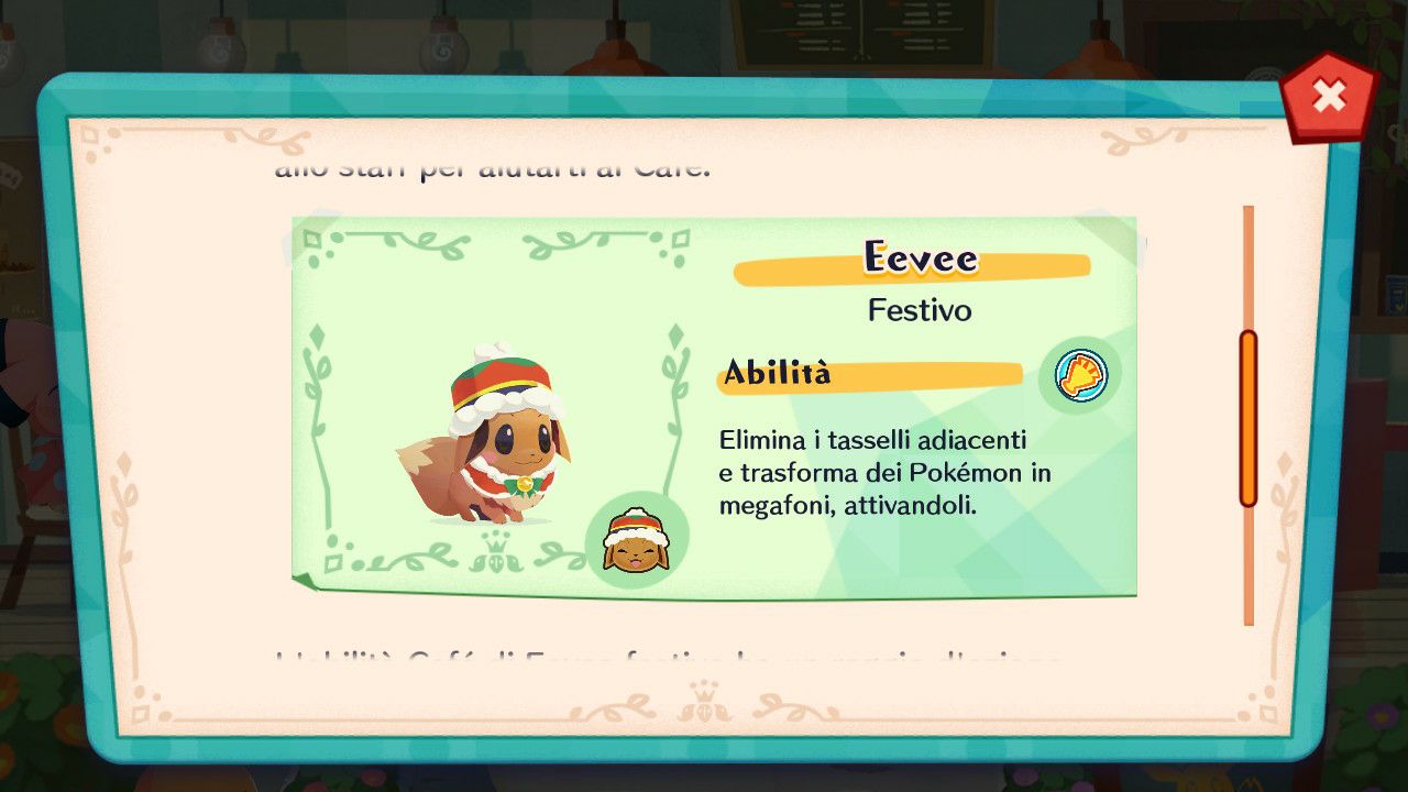 Fino alle 6:59 del 30 dicembre troverete nel negozio del gioco un nuovo pacchetto acquistabile a 11,99€, il set festivo Eevee: all’interno troverete 13.400 ghiande d’oro, tanti strumenti e ovviamente lo speciale Eevee natalizio con abilità potenziata. Non perdetevi poi l’evento di Lucario festivo che verrà a far visita al café durante lo stesso periodo.