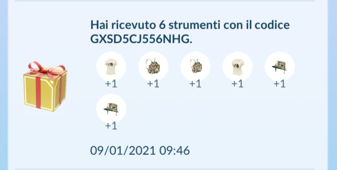 In questo modo automaticamente il codice verrà attivato nell’account collegato e lo ritroveremo all’interno del gioco. Quest’ultimo metodo funziona anche con dispositivi Android e l’accesso è consentito esclusivamente tramite Google, Facebook o Niantic Kids.
