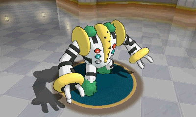 Una volta catturati Regirock, Regice e Registeel, accadrà qualcosa di speciale: il potente Pokémon leggendario Regigigas si sveglierà! Si dice che Regigigas abbia creato dei Pokémon simili a sé usando una montagna ghiacciata, rocce e magma. Secondo le leggende, questo Pokémon ha trainato i continenti con delle funi.