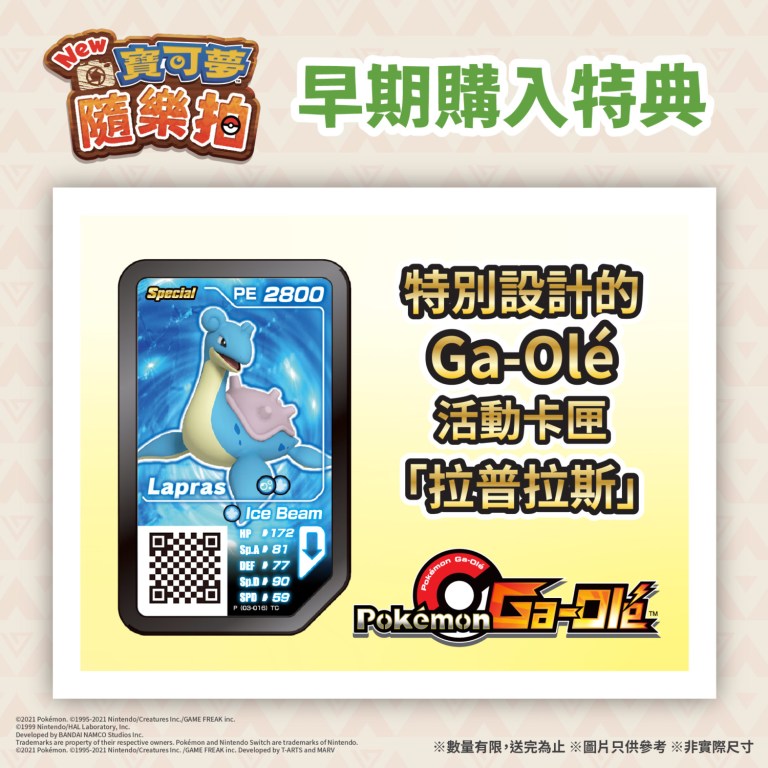 Il bonus consiste in una borsa in tela esclusiva decorata con artwork ufficiale e logo del gioco per i giocatori di Hong Kong; il bonus per gli acquirenti taiwanesi invece consiste in un gettone di Lapras per Pokémon Ga-Olé, gioco arcade Pokémon molto noto in Asia.