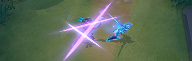 Descrizione: Ceruledge scaglia nella direzione indicata una lama di forza psichica che infligge danni, rallenta gli avversari colpiti e ne riduce la Difesa (di 58 punti al livello 15). Se Ceruledge colpisce degli avversari con un attacco base, il tempo di ricarica della mossa si riduce di 0,5 secondi.