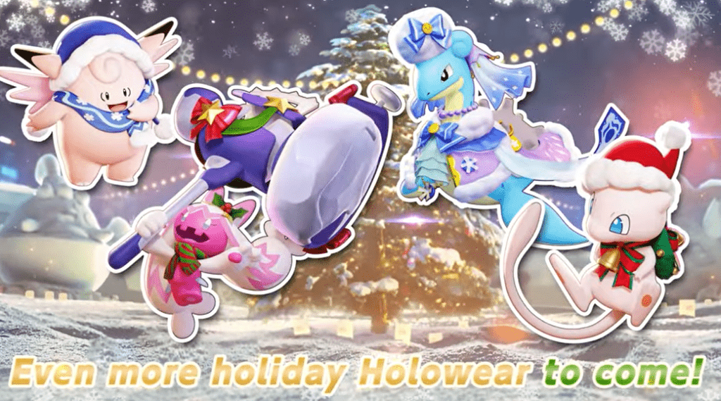 Ma le sorprese non sono finite qui. Alla fine del trailer, al fine di farci sentire a pieno l’atmosfera natalizia, sono stati annunciati diversi Holowear a tema festivo, non solo per il neofita Tinkaton, ma anche per gli altri Pokémon già presenti nel roster. Impossibile non farsi catturare dalla bellezza e da quanto questi outfit siano perfetti per ognuno dei mostriciattoli.