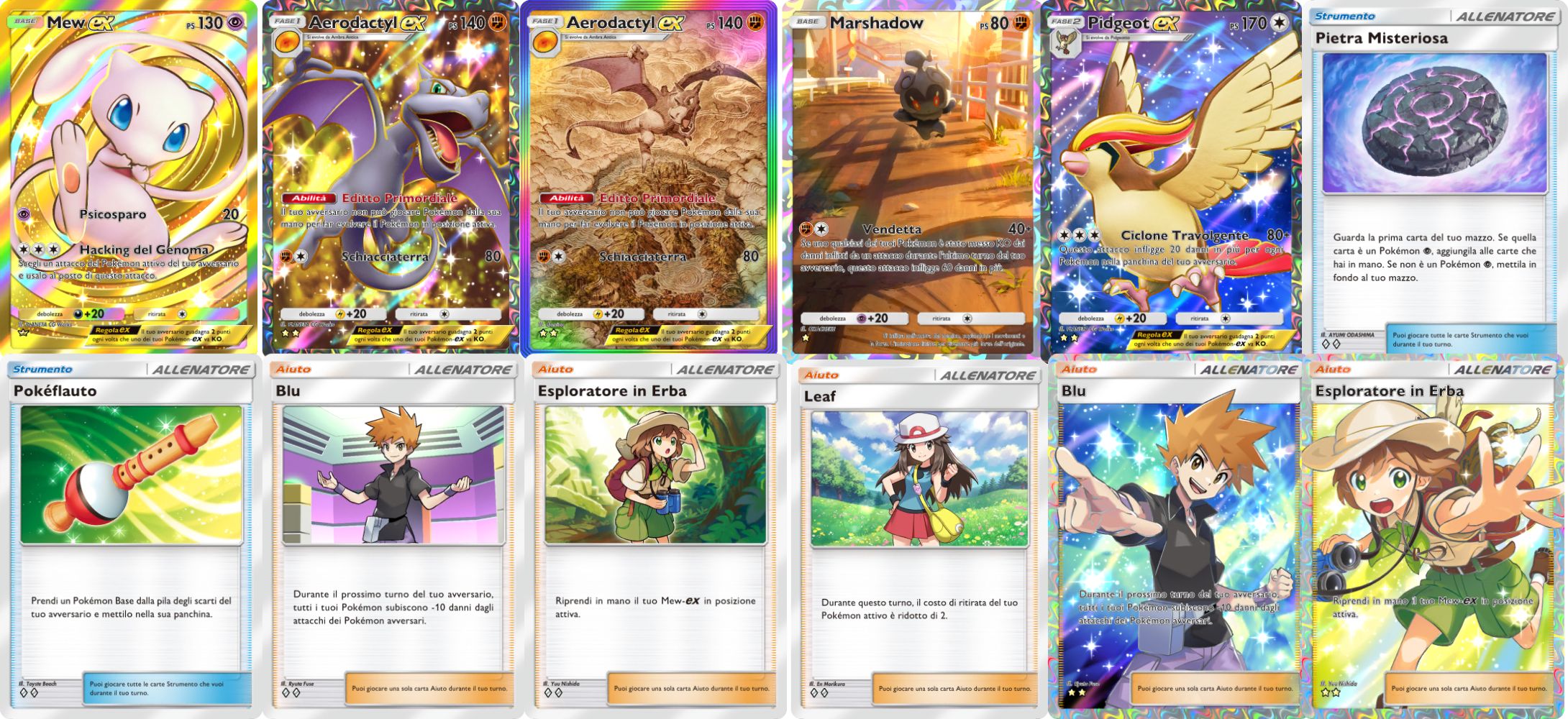 Il set contiene un totale di 68 carte più comuni, a cui se ne vanno ad aggiungere poi 18 dalle illustrazioni più rare. La nuova carta dall’illustrazione immersiva di questo set è Celebi-ex, mentre la carta più rara è il Mew-ex dorato. Dal punto di vista competitivo, uno dei mazzi più utilizzati sarà sicuramente Celebi-ex e Serperior, ma anche Aerodactyl-ex sarà probabilmente molto utilizzato.