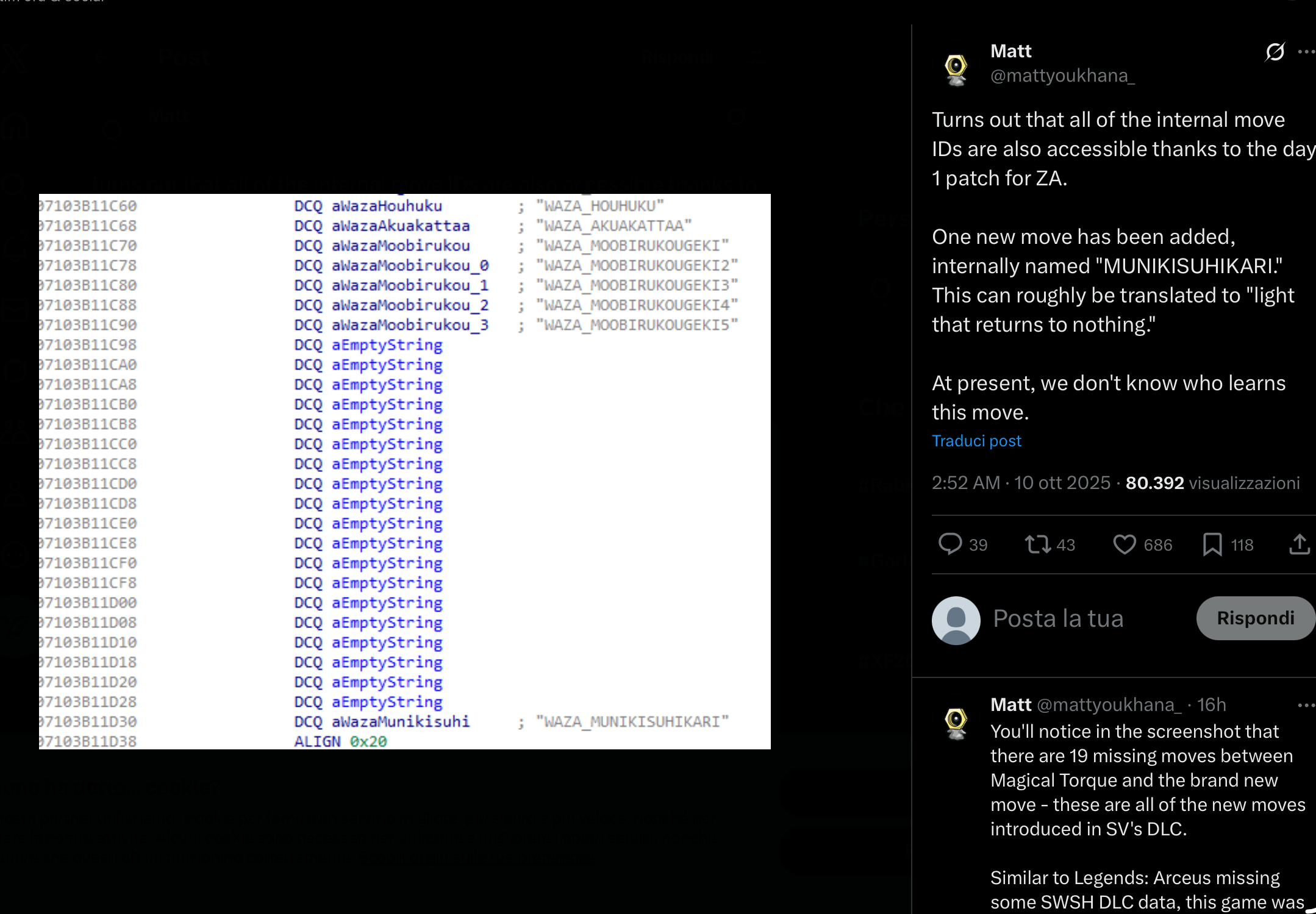 L’utente mattyoukhana_ ha condiviso su X alcune informazioni sulla recente patch di Leggende Pokémon Z-A, che sembrerebbe rivelare le mosse presenti nel gioco, includendo anche una nuova mossa inedita.