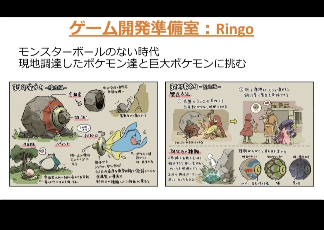 Le immagini condivise dall’utente mostrano quelle che sembrano essere pagine di appunti scritte e disegnate dall’Allenatore riguardo gli approcci di cattura e i comportamenti dei Pokémon selvatici incontrati, come nel caso di Snorlax nell’angolo in basso a sinistra della foto, e sui possibili prototipi della Poké Ball: sembrerebbe infatti che i materiali di questi prototipi, ad esempio la roccia e il metallo, siano determinanti per le prestazioni della cattura, similmente ai diversi materiali che si potevano utilizzare in Leggende Pokémon: Arceus.