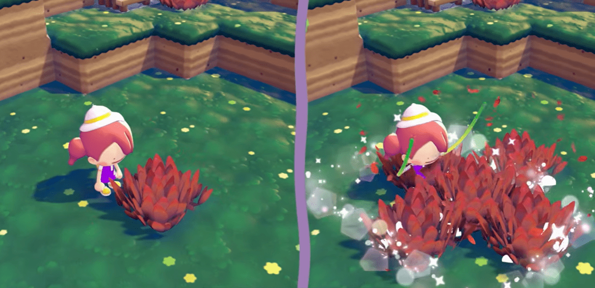 - Effetto: fa spuntare dell’erba alta sulle zolle di terreno. Se usata dopo aver mangiato un’Insalata, questa verrà potenziata e sarà possibile applicare l’effetto su un’area più ampia, creando al contempo nuovi habitat in base al tipo di terreno.