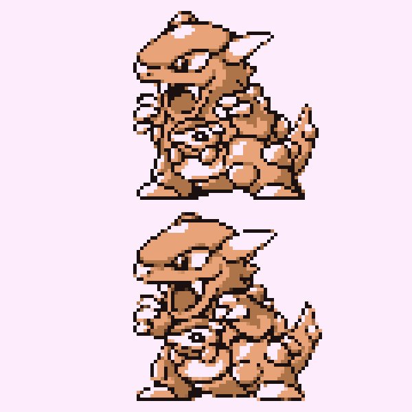 Concentrandoci in particolare sull’affettuoso Pokémon Genitore, appare evidente che lo sprite sia stato rivisto principalmente in tonalità e colorazione. Forse il rosso e il blu risultavano troppo caratteristici per un mostriciattolo di tipo Normale.