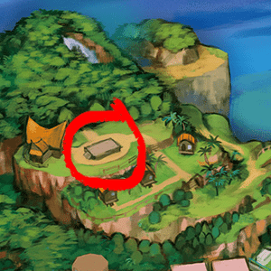 La struttura dal tetto verde scuro potrebbe essere la Pensione Pokémon, anche se a molti questa ipotesi fa storcere il naso dato che farebbe entrare un meccanismo del genere quasi da subito all’interno del gioco. Tuttavia, ad avvalorare la tesi c’è il lunghissimo percorso rettilineo che collega da nord a sud l’isola, e che termina proprio davanti all’edificio, un po’ come il Percorso 7 di Kalos!