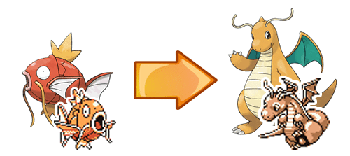 - Dratini: Esegue la muta più volte. Vengono fatti stivali di lusso con la pelle che lascia cadere.