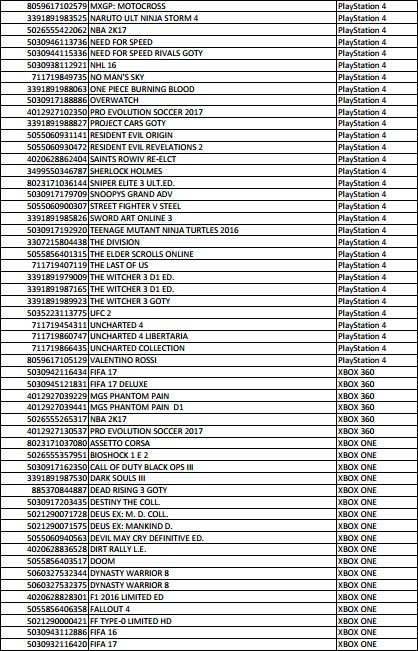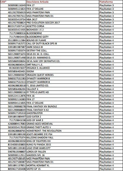 Tra i giochi utilizzabili per usufruire di questa offerta vi sono anche titoli appartenenti ad altre piattaforme. Di seguito trovate l’elenco completo dei giochi ammessi alla promozione, consultabile anche tramite la seguente pagina.