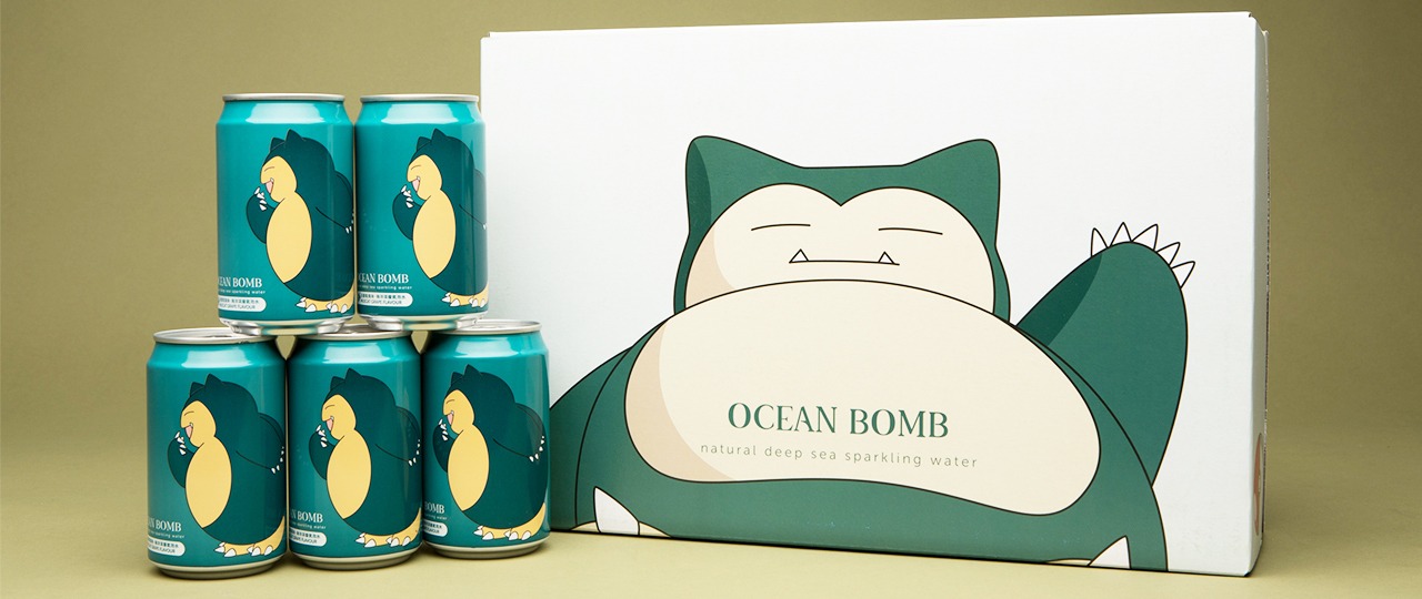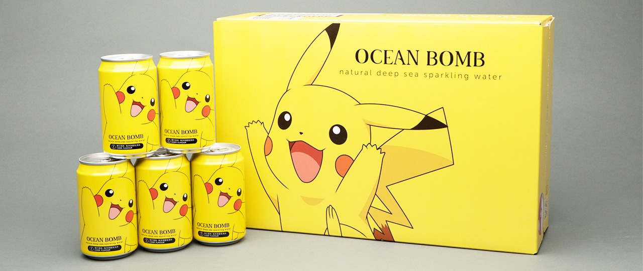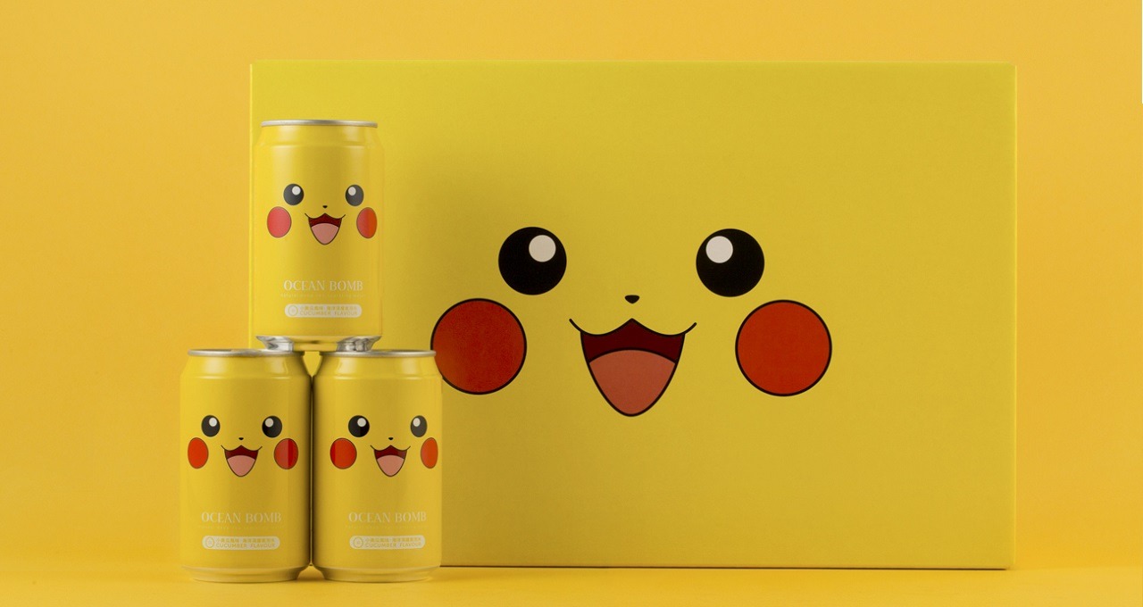 Il marchio YHB, noto per l’acqua frizzante Ocean Bomb, ha lanciato ben 7 bevande diverse ispirate ai Pokémon più amati, come Bulbasaur (gusto mela), Squirtle (gusto pera), Charmander (gusto mandarino), Pikachu (gusto sidro), Snorlax (gusto uva bianca), Jigglypuff (gusto pesca) e le iconiche Master Ball e Poké Ball (gusto originale).