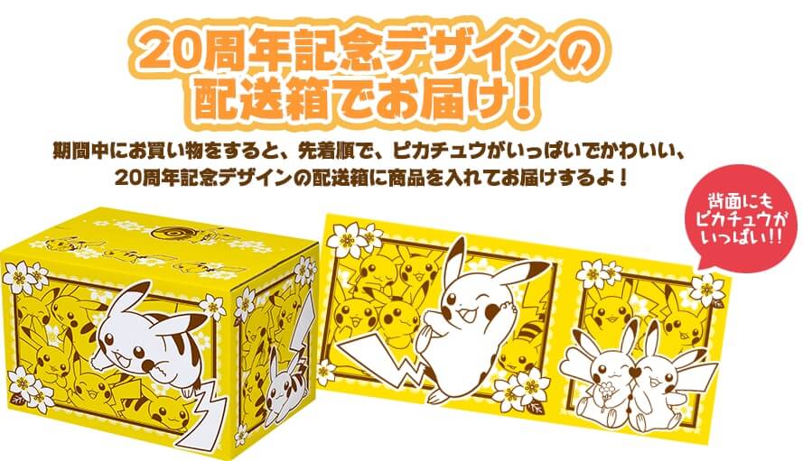 Per i membri del Pokémon Center e tutti gli iscritti saranno disponibili articoli esclusivi come la borsa di Poliwhirl o le ciabatte di Stunfisk, e la carta promozionale di Pikachu con il simbolo del ventesimo anniversario verrà regalata a coloro che acquisteranno cinque buste d’espansione per il Gioco di Carte Collezionabili Pokémon. Queste e molte altre sorprese attendono i fan delle creature tascabili nei mesi di aprile e maggio.
