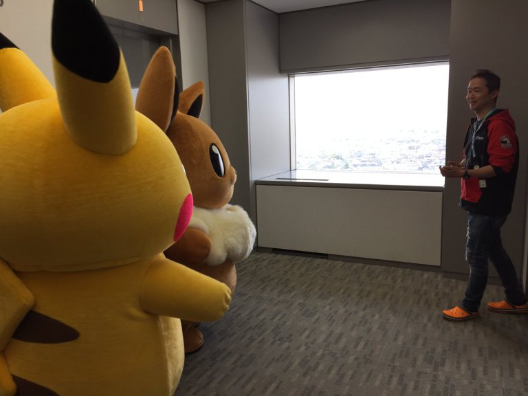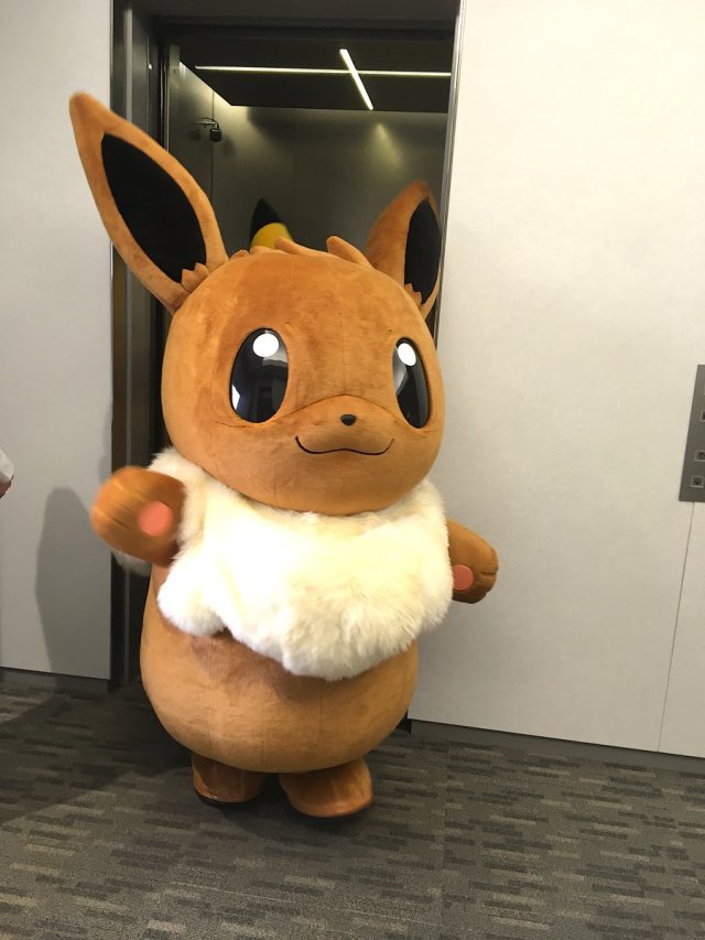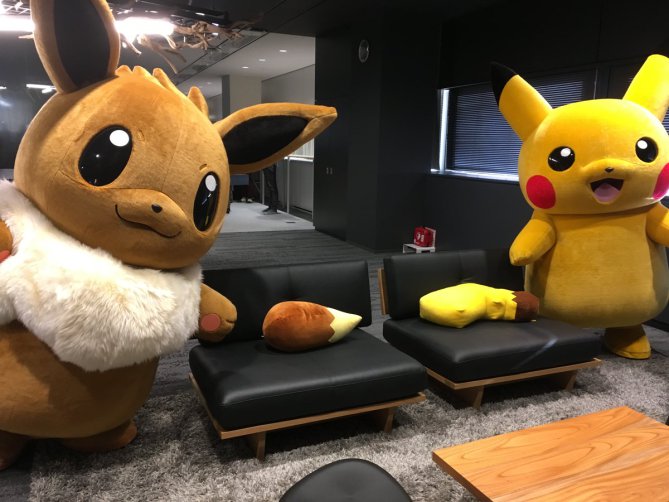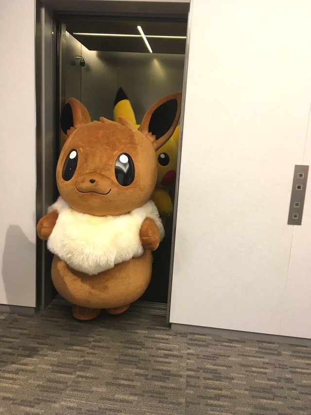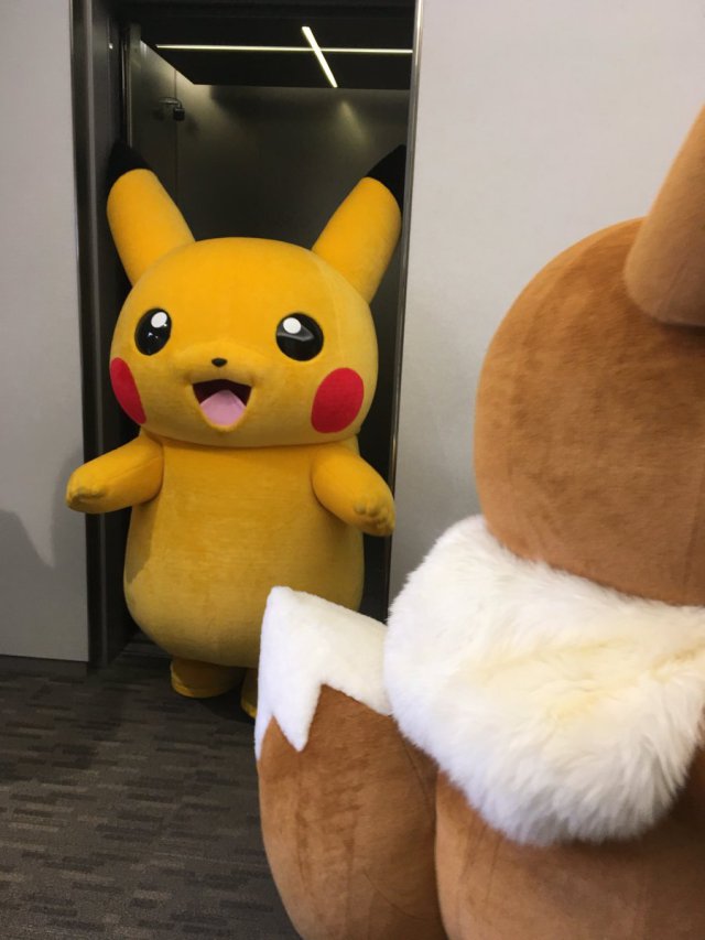 “Eevee e Pikachu riescono nel loro importante intento: irrompere in un’assemblea dell’intera compagnia per lo sviluppo del gioco!”