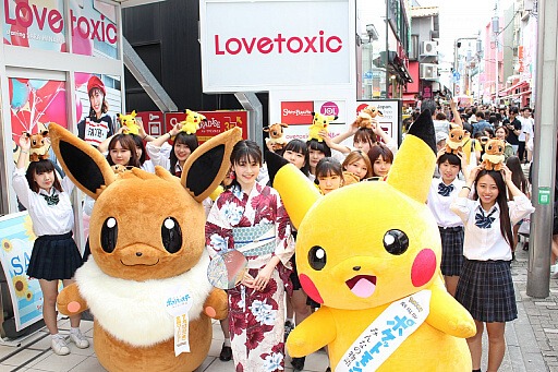 Al fine di commemorare l’uscita di Pokémon: La Storia di Tutti, 21esimo lungometraggio animato avente come protagonisti i mostriciattoli tascabili, è stata organizzata una parata nella celebre fashion street di Harajuku, che ha visto sfilare tra i suoi palazzi Pikachu, Eevee e ben 15 modelle giapponesi.