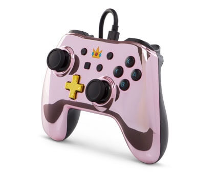 La serie del più famoso idraulico del mondo avrà due periferiche dedicate: una completamente dorata e con il logo di Super Mario stesso (la M che porta sul cappello), l’altra sarà rosa sulla parte superiore e nera su quella inferiore. Avrà anche la corona di Peach raffigurata al centro.