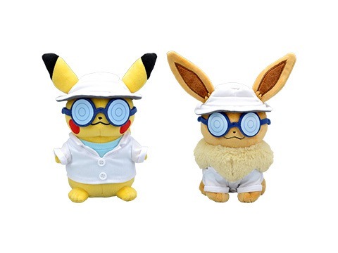 I primi sono dei simpatici peluche di Pikachu oppure Eevee in alcuni degli abiti, riprodotti con estrema fedeltà, con i quali è possibile personalizzare il proprio Pokémon compagno nei giochi. Ogni peluche sarà acquistabile al prezzo di 1944 yen (circa 15 euro).