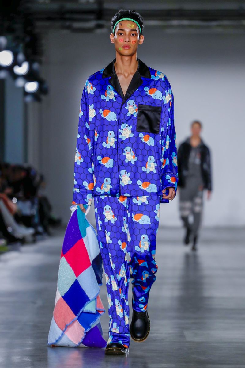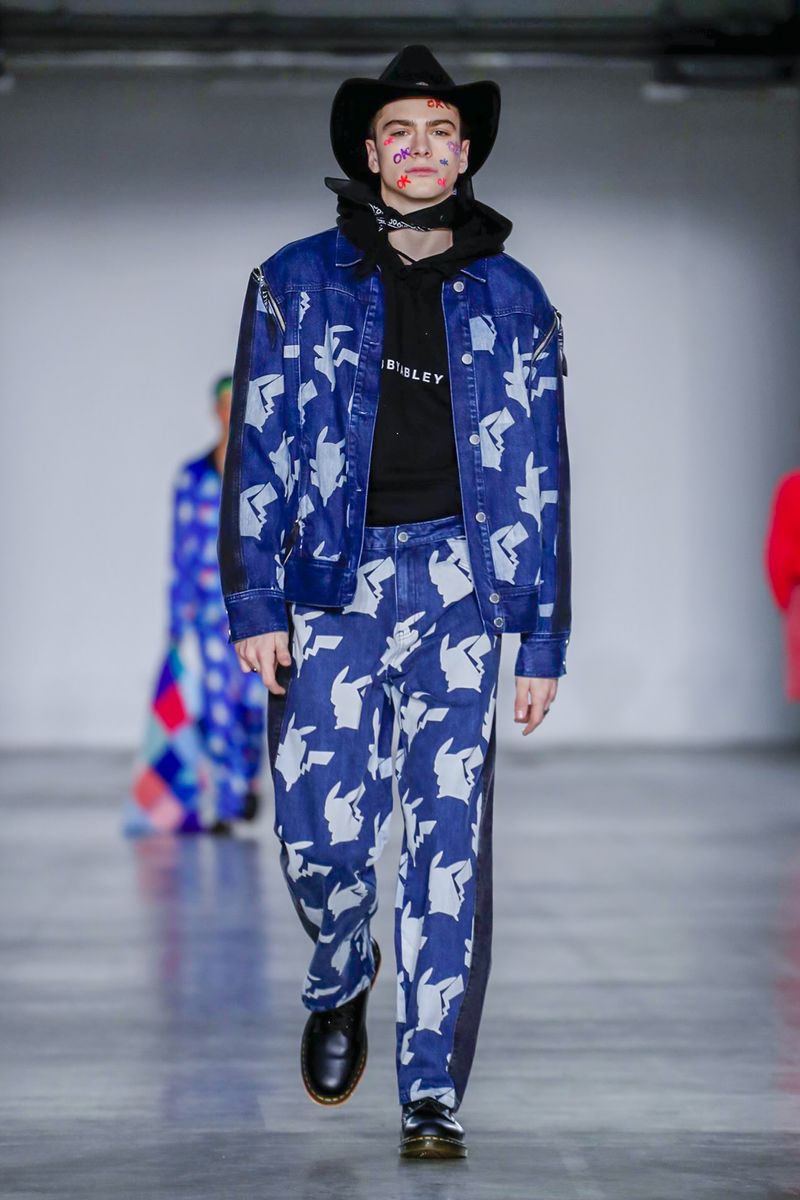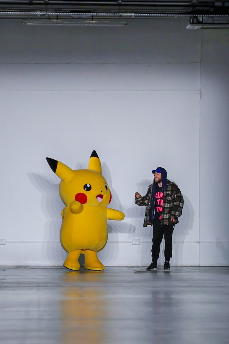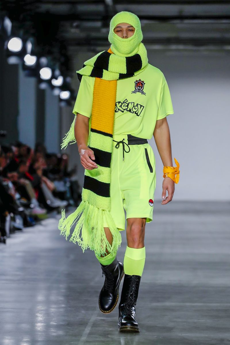 Ecco quindi che Bobby Abley mostra una serie di abiti dai colori sgargianti, richiamando Pokémon appartenenti alla prima generazione (indubbiamente i più celebri), ma anche elementi più strettamente iconografici, come le Poké Ball. Alla fine della sfilata, per suggellare il legame con i mostriciattoli tascabili, lo stesso stilista ha camminato lungo la passerella accompagnato nientemeno che da una mascotte vestita da Pikachu. Più chiaro di così non si può!