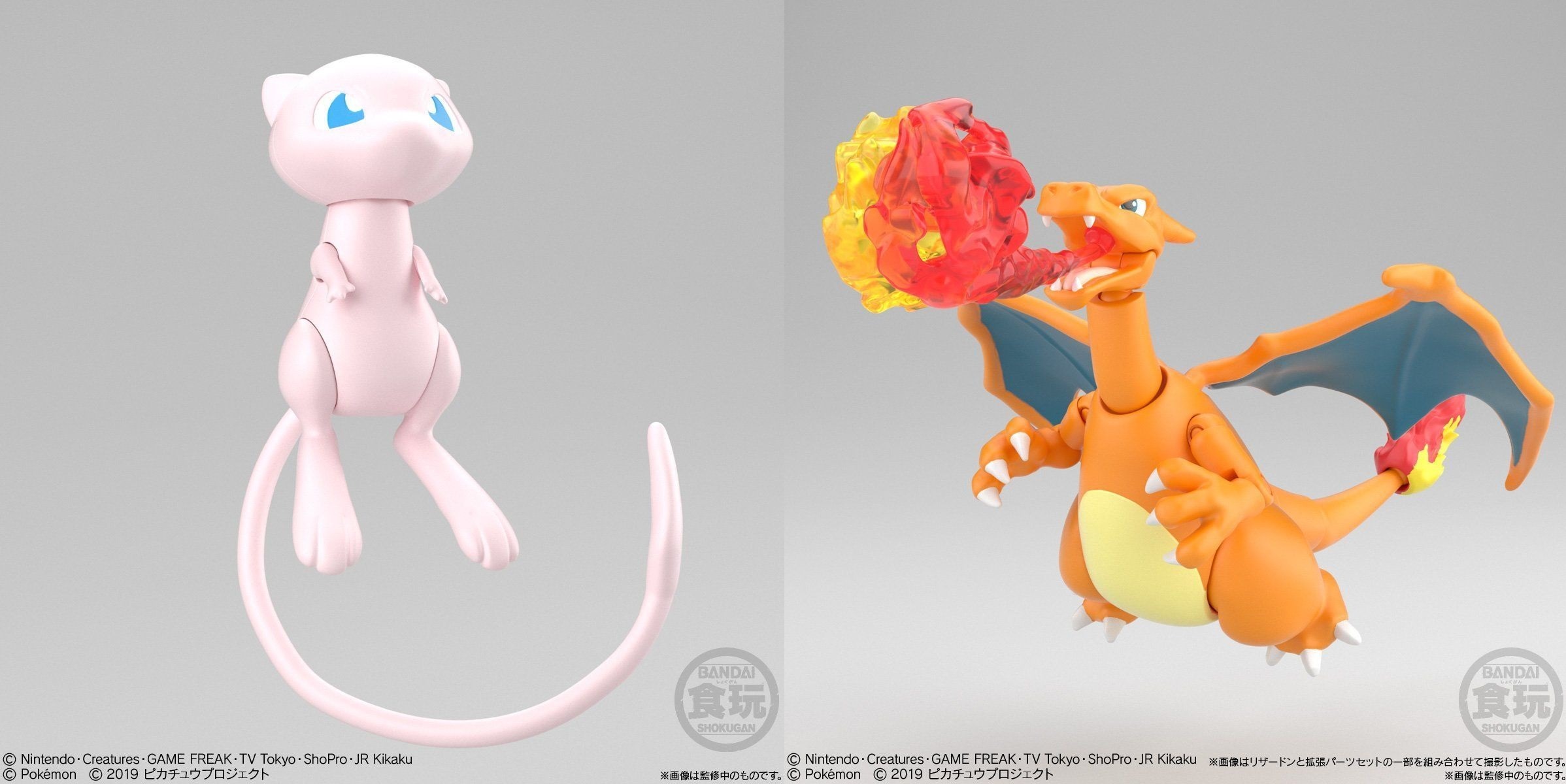 Parliamo prima delle action figure dedicate a tre dei Pokémon più amati della prima storica generazione: Mewtwo, il protagonista del film, Mew e Charizard. Le action figure sono prodotte da Bandai, con un grande livello di attenzione e cura dei particolari. Come vediamo dalle immagini Charizard sarà dotato anche dell’attacco Lanciafiamme, mentre il dolce Mew potrà contare su una base trasparente che lo sorreggerà.