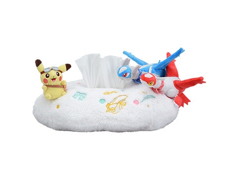 Il simpatico topo giallo e le due creature leggendarie danno le proprie fattezze a dei morbidi peluche che ritraggono il primo intento a volare cavalcando i secondi, mentre indossa quelli che sembrano essere un paio di occhiali da aviatore. Non solo, The Pokémon Company si è davvero sbizzarrita e ha prodotto persino dei porta fazzoletti a forma di nuvola, ai cui lati siedono proprio i tre mostriciattoli tascabili. Questo ultimo oggetto costerà 3400 yen (che al cambio attuale corrispondono a circa 27,22 euro).