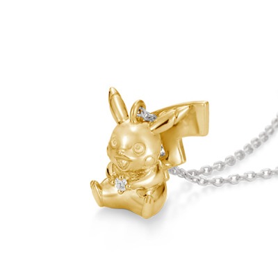 La catena della collana è realizzata in argento, mentre il ciondolo raffigurante Pikachu è rivestito in oro giallo. La sua espressione, le sue caratteristiche orecchie e la tipica forma della coda del Pokémon sono state fedelmente riprodotte in tre dimensioni. A impreziosire ulteriormente il gioiello vi è un diamante che Pikachu stringe a sé come per proteggerlo. All’estremità del gancio sul retro della collana vi è raffigurata una Poké Ball.