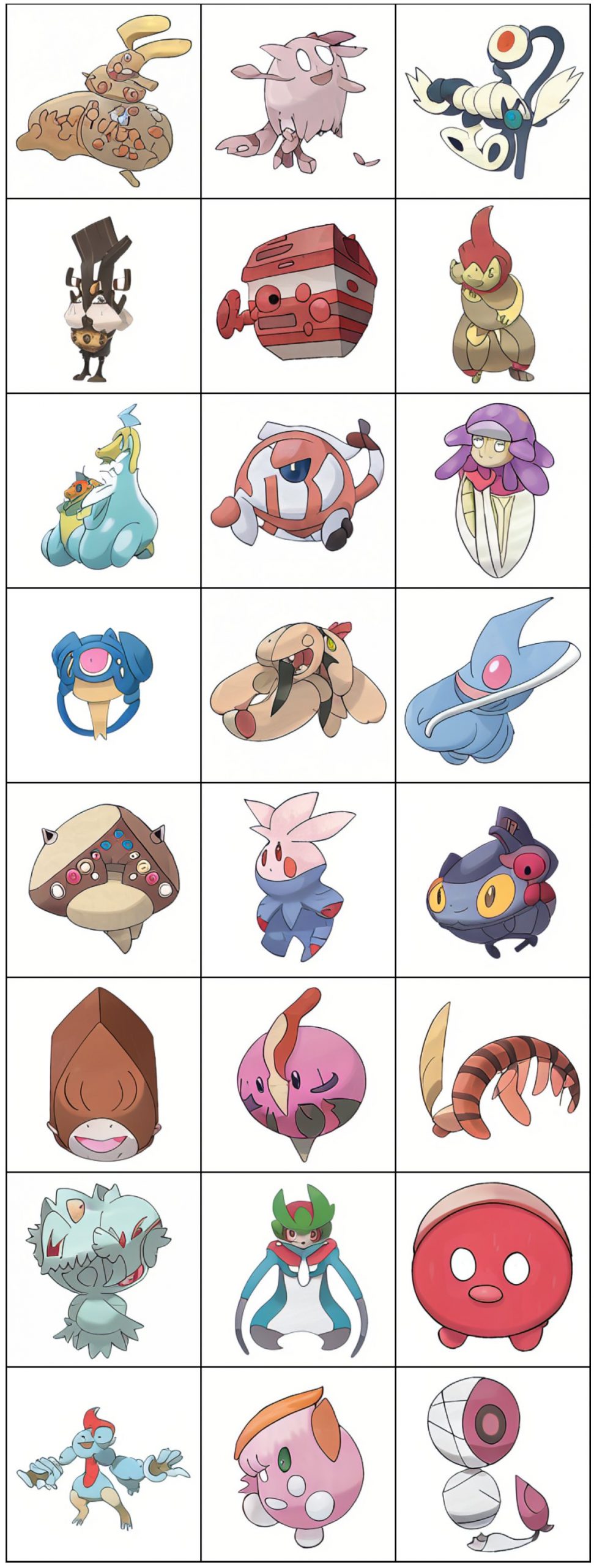 I mostriciattoli che il bot ha prodotto grazie al machine learning sono nella maggior parte dei casi strani, deformi e molto diversi dal concetto di Pokémon che conosciamo, ma alcuni di essi sono invece molto credibili e sembrano quasi dei Pokémon veri. Per esempio, lo sono quelli mostrati nelle immagini di seguito: tra una specie di orsetto gommoso rosa, un umanoide peloso con occhi da mosca e un baby maialino nero ce ne sono di tutti i gusti e di tutti i tipi. Essendo stato addestrato su immagini di Pokémon veri, il bot ha preso ispirazione da essi per creare i suoi e possiamo notare infatti delle forme, delle pose e delle caratteristiche tipiche di Pokémon come Ditto, Tangrowth, Tepig e altri.