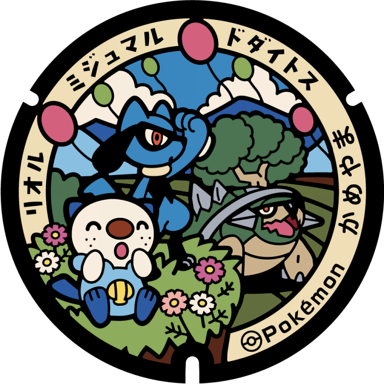 Come in tutti i tombini della prefettura installati finora, anche in quelli nuovi il protagonista è il dolcissimo Oshawott. La scelta non è alquanto casuale, il Pokémon Lontra è infatti il Pokémon scelto come ambasciatore della prefettura nell’iniziativa conosciuta come Pokémon Local Acts. I protagonisti dei tombini sono: Oshawott e Tirtouga, Oshawott, Claydol e Marill, Oshawott, Virizion e Pansage, Oshawott, Bounsweet e Florges, Oshawott e Whimsicott e infine Oshawott, Riolu e Torterra.