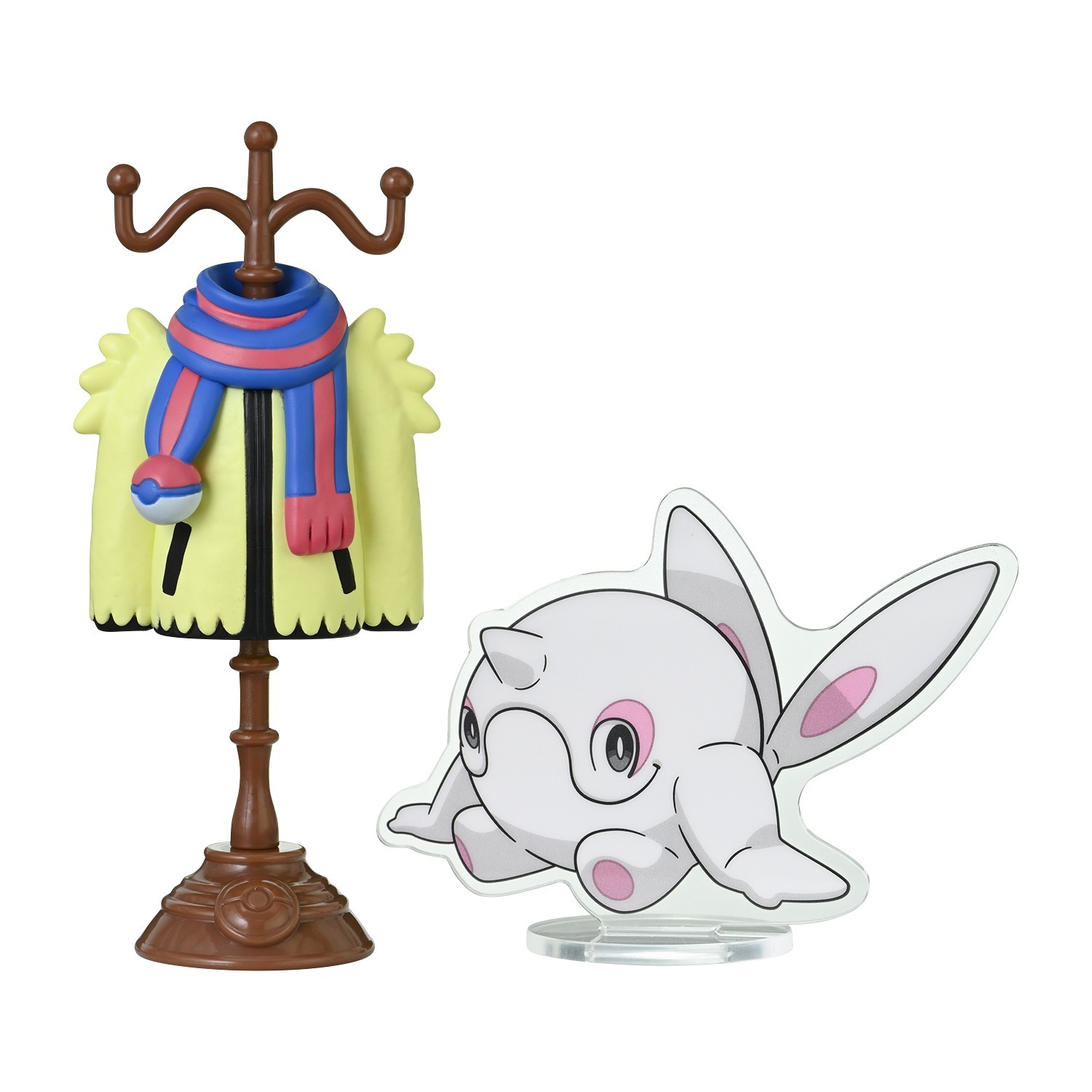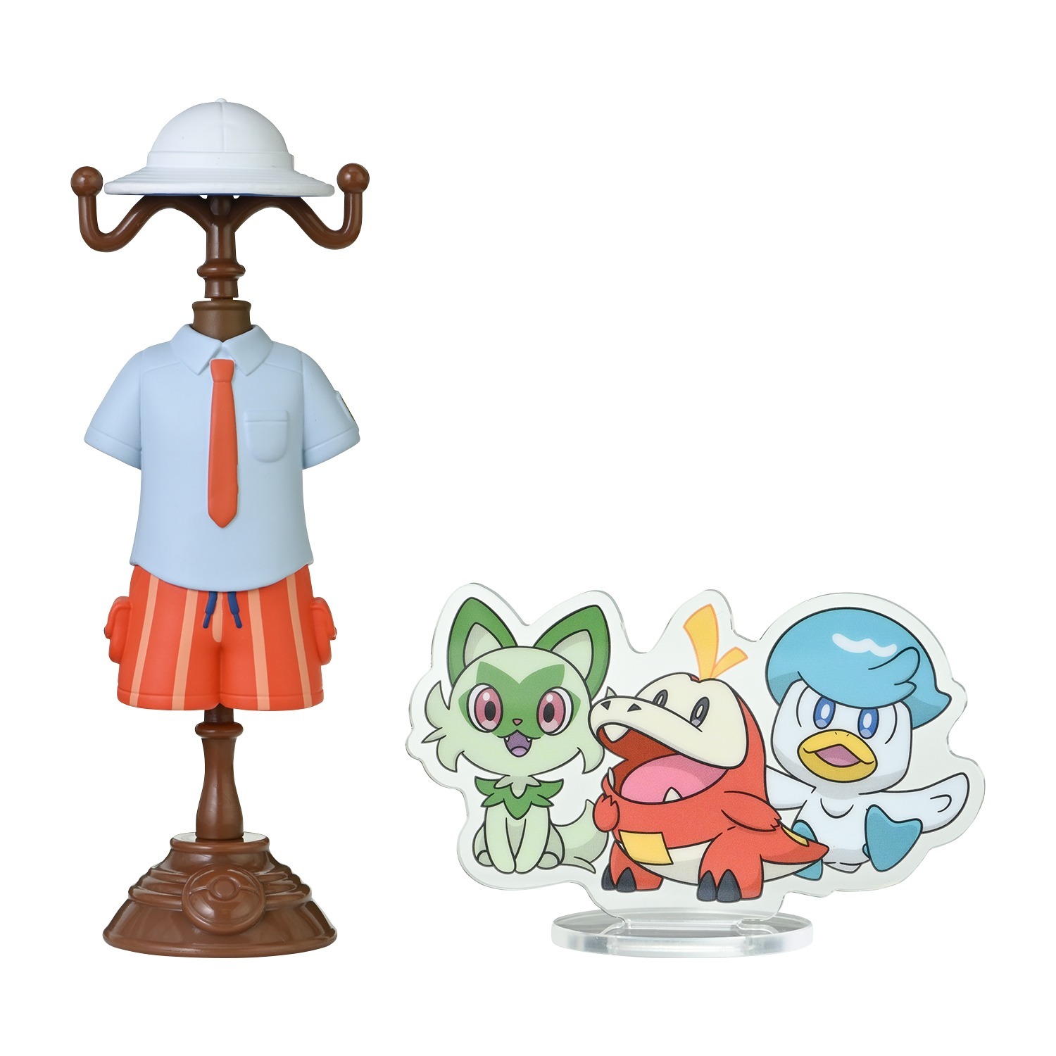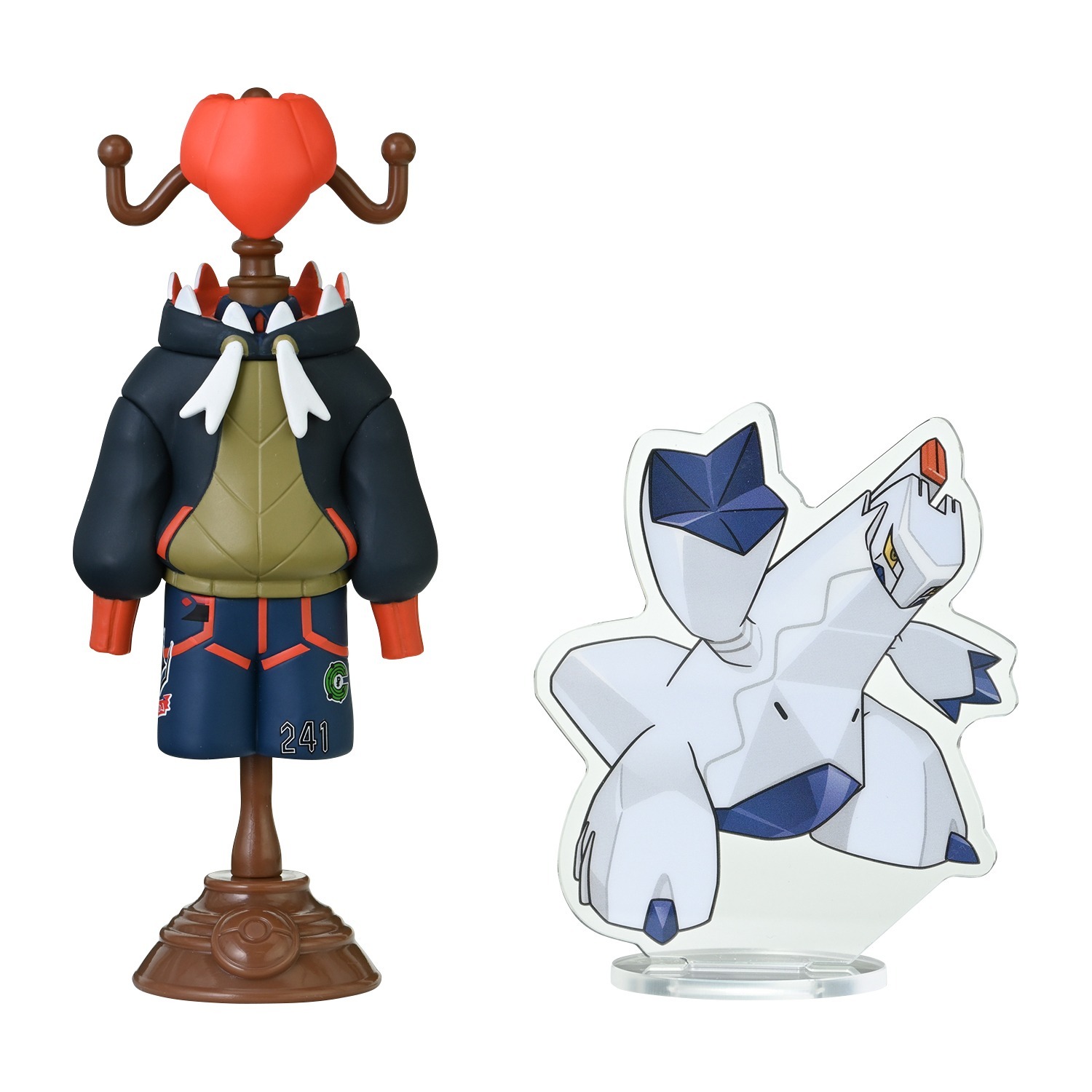 Si tratta di action figure raffiguranti i soli abiti degli Allenatori in questione, appesi a un attaccapanni. A fianco di ognuna di esse, è raffigurato, su un piedistallo trasparente, il Pokémon che spesso si è visto al suo fianco, nei giochi e nella serie animata Pokémon. Abbiamo per esempio la Capopalestra della regione di Unima Camelia con Emolga, gli studenti dell’Accademia Arancia e dell’Accademia Uva con i Pokémon iniziali di Paldea e il potente Allenatore della regione di Galar, Laburno insieme a Duraludon.