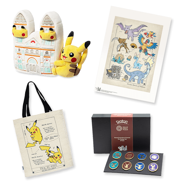 Tra gli articoli che vedono protagonista il celebre Pokémon troviamo anche un peluche che abbraccia il Museo di Storia Naturale e una borsa di tela che mostra le differenze tra un Pikachu maschio e uno femmina, con particolare risalto alla coda a forma di saetta o di cuore.