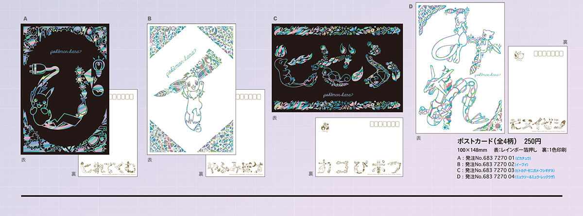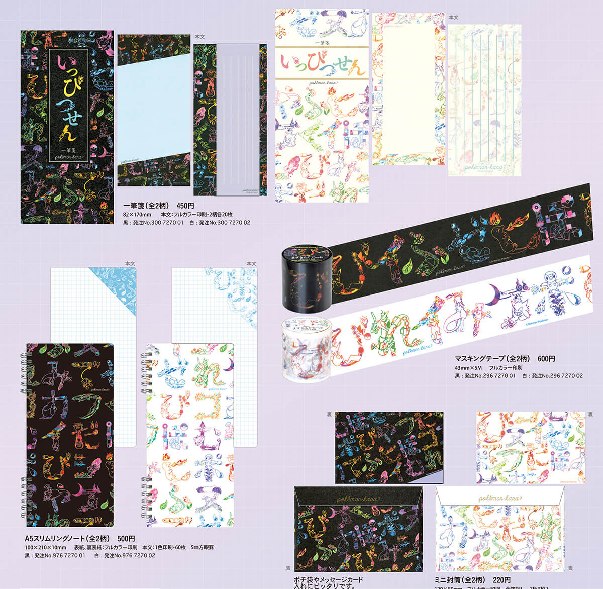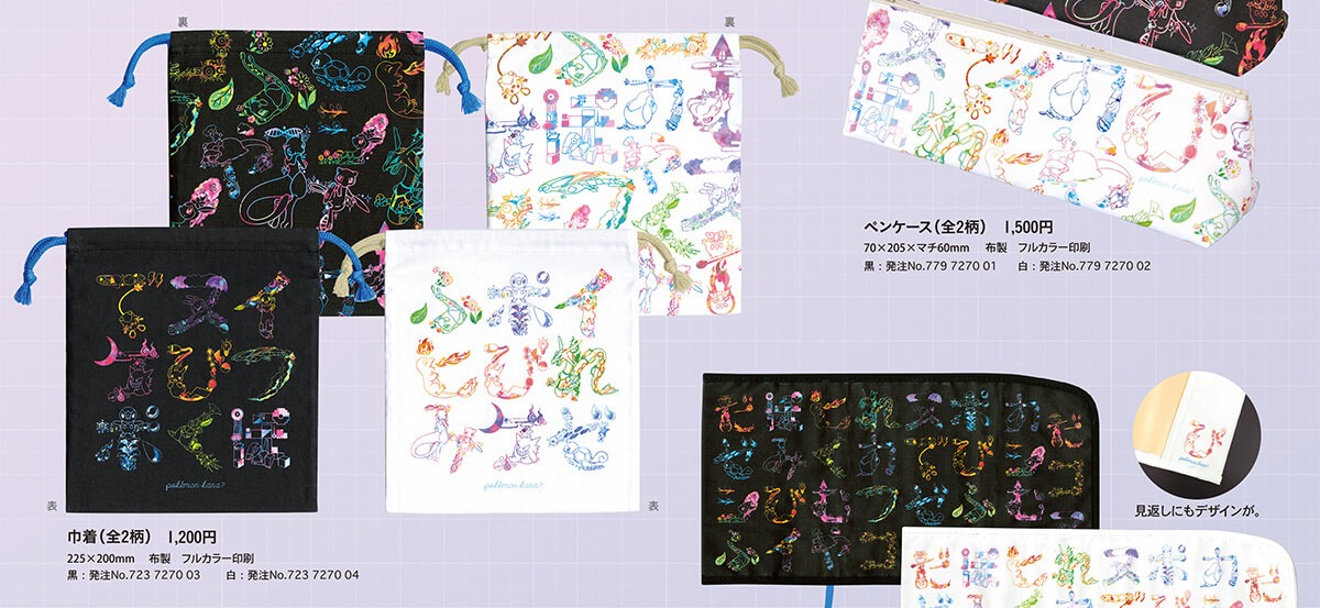 Presto arriveranno nei Pokémon Center giapponesi i prodotti della linea Pokémon-kana! Gli articoli di questa nuovissima linea sono caratterizzati da un fondo monocromatico, bianco o nero, interrotto da figure con sfumature arcobaleno. Ecco il listino dei prezzi e le immagini: