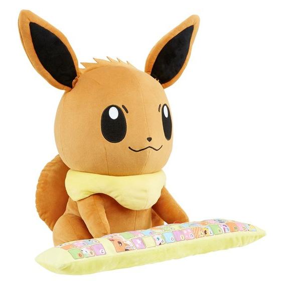 Il cuscino ergonomico del Pokémon Evoluzione è stato pensato per le persone che devono trascorrere molto tempo al computer, ma può anche essere separato dalla sua morbida tastiera per appoggiare i gomiti e diventare così un bellissimo peluche di Eevee gigante!