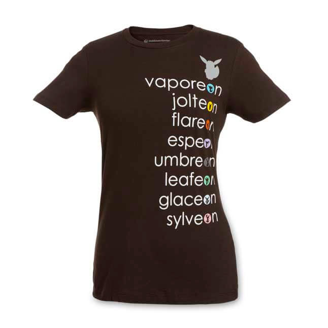 Al momento la linea, accompagnata da peluche e spille dedicati alle evoluzioni di Eevee, conta solamente quattro prodotti: una maglietta da uomo, acquistabile per 29,95 dollari (circa 27,50 euro), una felpa, acquistabile per 69,95 dollari (circa 64,20 euro), una maglietta da donna, acquistabile per 29,95 dollari (circa 27,50 euro), ed una borraccia, acquistabile per 29,95 dollari (circa 27,50 euro).