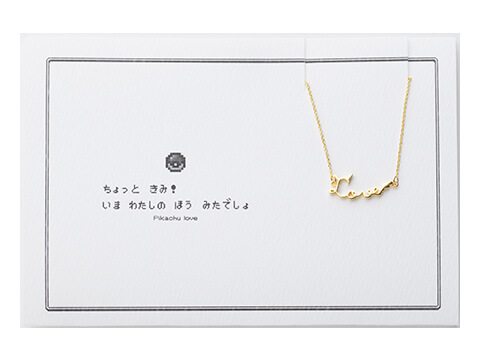 I monili, acquistabili per 3.800 yen (circa 32,40 euro) l’uno, presentano un design semplice, ma non per questo meno apprezzabile. Spesso alle figure è associata una parola di riferimento, come “amore” o “scienza”, altre volte a fare da ciondolo è direttamente una frase. In ogni caso, sono presenti collane per tutti i gusti, da quelle con scritte più tenere a quelle con lo slogan della serie Pokémon!