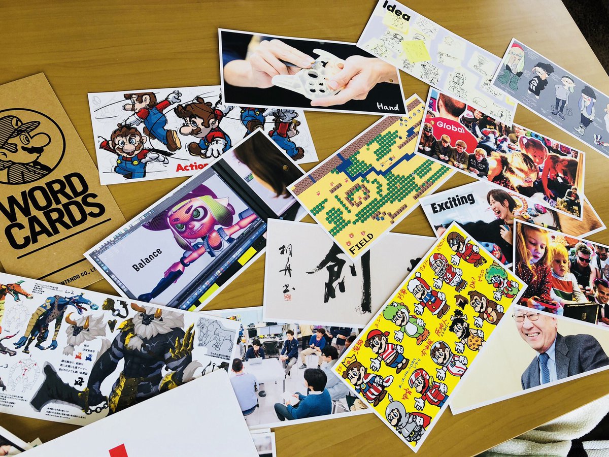 Il libretto commemorativo del 2018 si apre con una copertina in cui fa capolino un profilo di Mario, subito sotto al titolo “Word Cards“. Questa pubblicazione, a metà strada tra un artbook e una raccolta di fotografie, bozzetti e contenuti di vario tipo riguardanti i titoli più importanti dell’ultimo anno, si presenta come un blocco di card rettangolari tenute insieme da un anello.