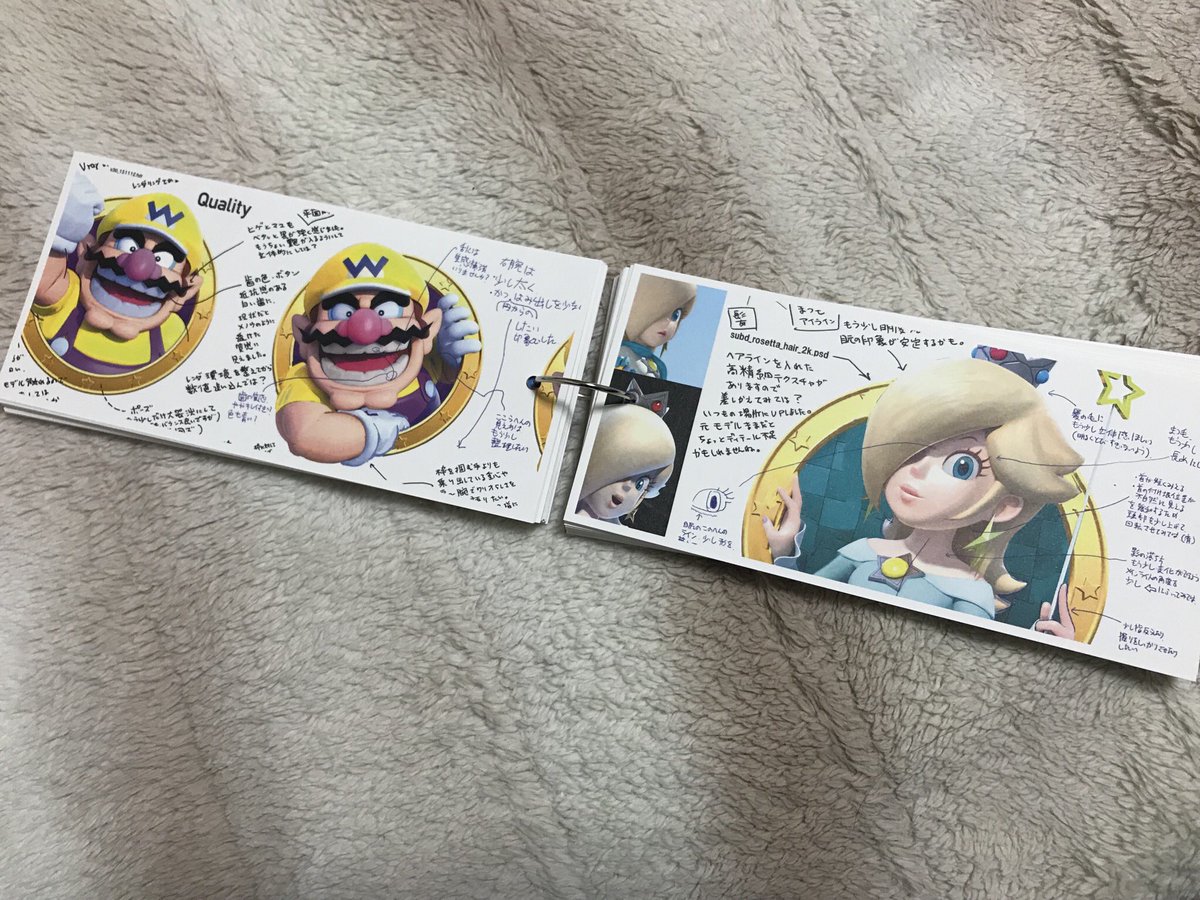 Nelle pagine di Word Cards possiamo notare tantissime illustrazioni dedicate a Splatoon e The Legend of Zelda, ma non manca lo spazio per il best seller Super Mario Odyssey. È interessante notare come in una pagina di bozzetti sembra che compaiano dei design inediti per alcuni costumi dell’idraulico più famoso del mondo, ma si tratta di una mera speculazione.