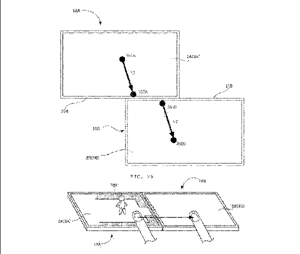 Secondo il testo incluso in calce alle immagini trapelate, tale brevetto consentirebbe a una pluralità di dispositivi di elaborare e gestire le informazioni in sincrono: in un esempio è possibile vedere un dito attraversare entrambi gli schermi, senza che i sistemi perdino informazioni sul suo posizionamento al momento del passaggio da un dispositivo all’altro.