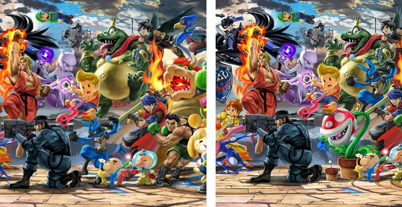 Come potete vedere dall’immagine sottostante, la Pianta Piranha è stata inserita nel posto riservato a Lucario. Ovviamente il Pokémon Aura non è stato rimosso, lo possiamo trovare poco più a destra della sua posizione originaria, davanti a King K. Rool. Poco più in basso troviamo la nostra famelica amica, posta alle spalle di Snake e con Lucas di EarthBound intento a saltare sopra la sua testa.