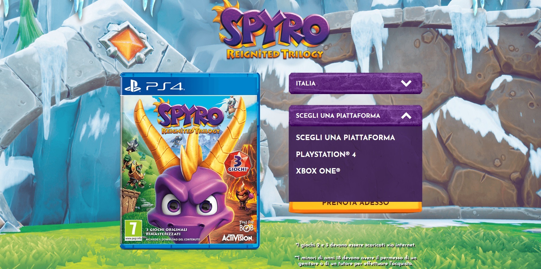 Un altro possibile elemento a favore dello sbarco di Spyro sulla console ibrida di Nintendo lo si può trovare proprio nel sito ufficiale del gioco, dove è comparsa una nuova opzione cliccabile nella scelta della console su cui giocare. L’opzione recita “Scegli una piattaforma”; potrebbe trasformarsi presto in “Nintendo Switch”?