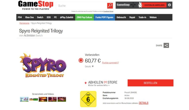 Durante la scrittura di questo articolo la divisione tedesca di GameStop ha eliminato la pagina riguardante la trilogia di Spyro per Nintendo Switch. Come si deve interpretare questo comportamento?
