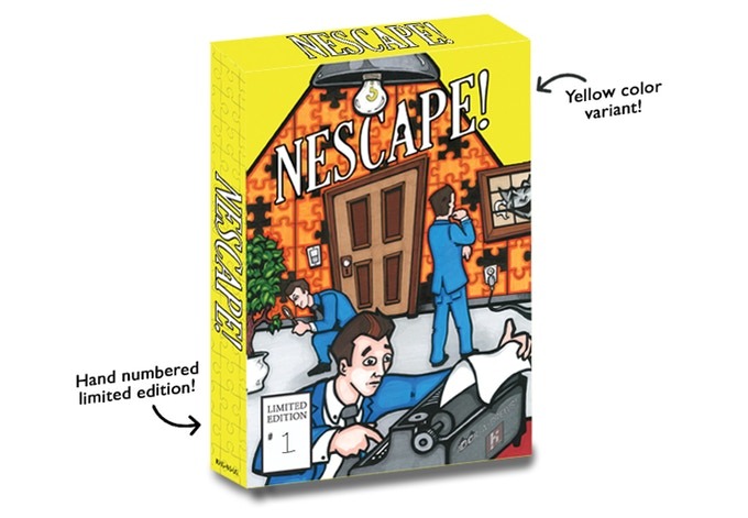 - per 100$ o più si avrà diritto all’edizione limitata e numerata di NEScape!, con la cartuccia di colore giallo, oltre all’adattatore per il mouse, a un CD contenente le tracce del gioco e a un esclusivo poster.