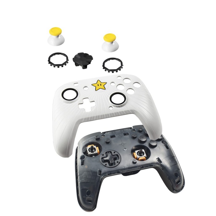 Come dimostrano le immagini, la periferica permetterà numerose personalizzazioni cromatiche. Sarà infatti possibile sostituire la scocca anteriore del controller, oltre alla croce direzionale e gli analogici, per renderla più affine ai propri gusti. Bisogna sottolineare che giochi come Splatoon 2 richiederanno ancora l’applicazione Nintendo Switch Online per comunicare con altri giocatori, mentre titoli più recenti consentiranno di scegliere se utilizzare la stessa o collegare cuffie e microfono direttamente al pad.