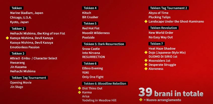 Inoltre, il DLC dedicato a Kazuya contiene ben 39 brani musicali dalla serie di Tekken provenienti sia dai primissimi titoli che dai più recenti.