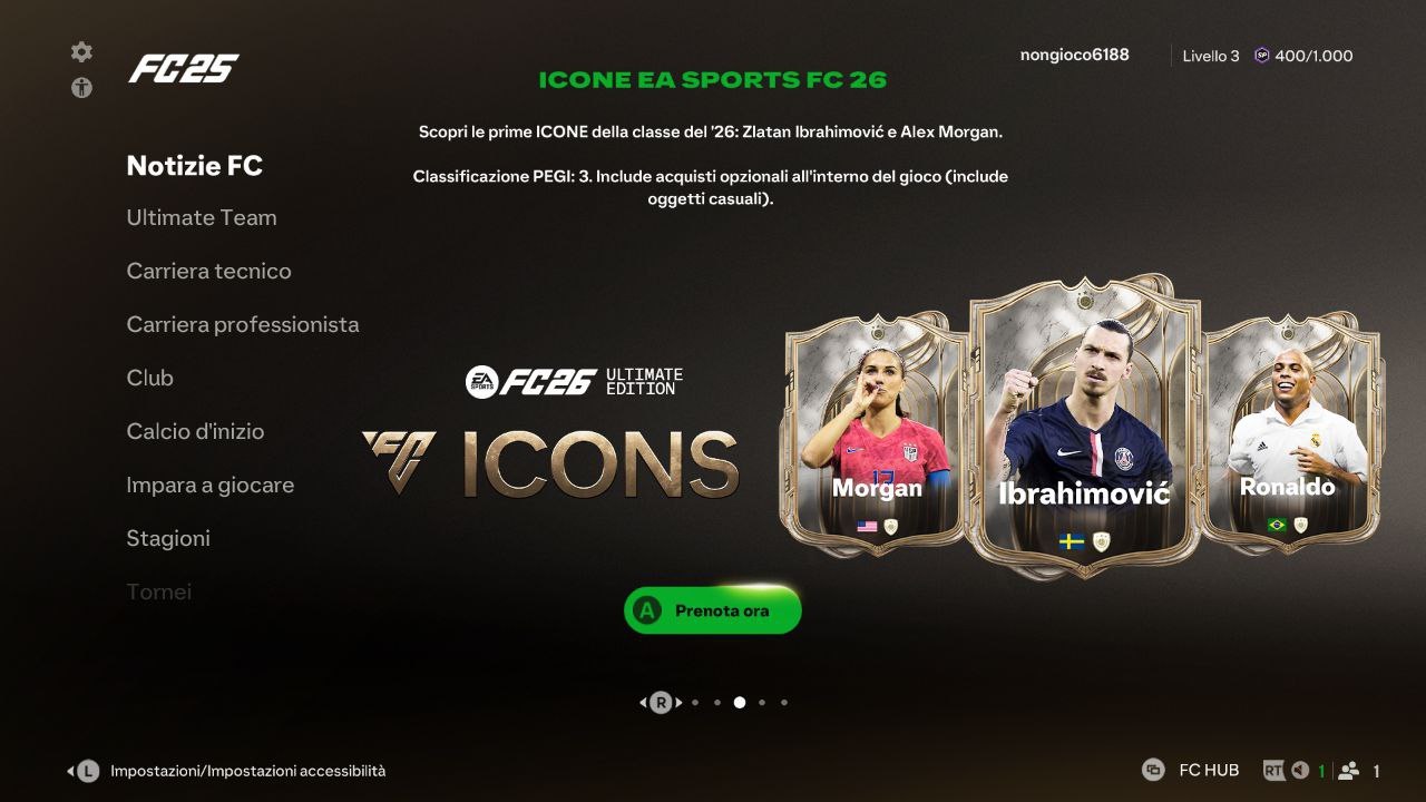Primo di tutti è l’accesso anticipato di una settimana, per potersi preparare al meglio all’avvento di tutti i videogiocatori e della vera stagione competitiva. Durante questa prima settimana potrete iniziare ad assaporare tutti i bonus proposti, come i 6.000 FC Points (da ricevere pian piano in due mesi), il Premium Pass della Stagione 1 e una scelta di una tra quindici Icone non scambiabili (in cui poter ricevere proprio Zlatan e Alex Morgan).