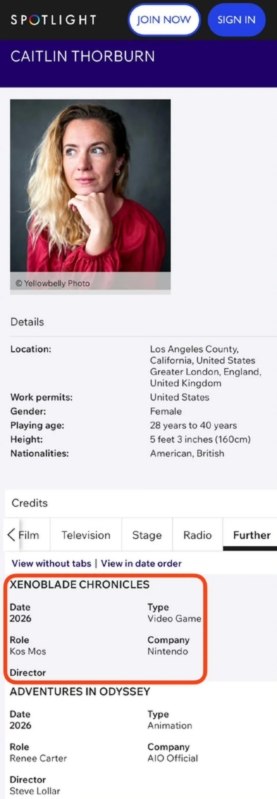 Secondo quanto riportato da diverse fonti internazionali, il profilo della doppiatrice Caitlin Thorburn, che in Xenoblade Chronicles 2 ha prestato la voce a più personaggi, sarebbe stato aggiornato con un riferimento a un progetto Xenoblade Chronicles previsto per il 2026. In particolare, l’attrice risulterebbe nuovamente coinvolta nel ruolo di KOS-MOS, personaggio iconico apparso sia in Xenoblade Chronicles 2 sia nella serie Xenosaga.