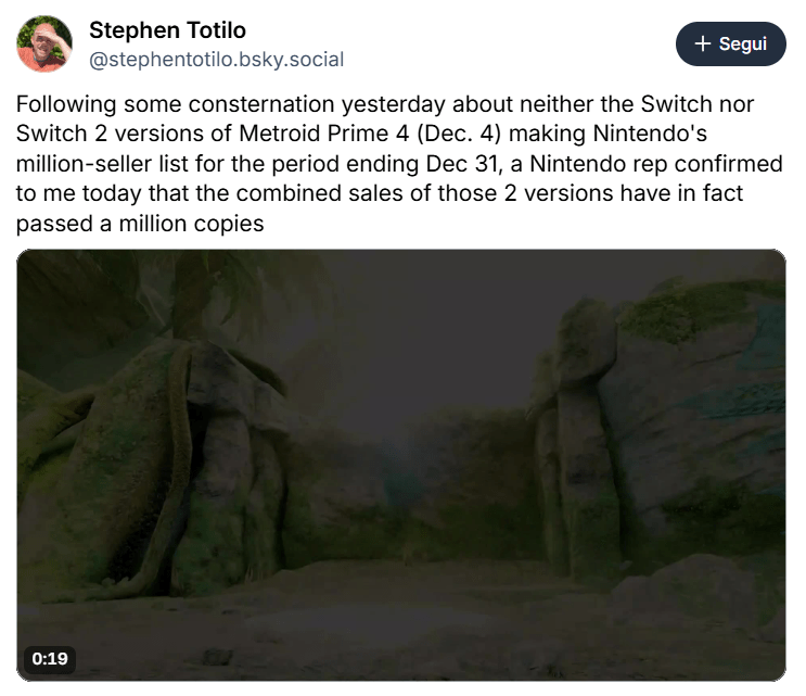 In ogni caso, non si tratta di un dato particolarmente allarmante. Lo sviluppo di Metroid Prime 4: Beyond è stato lungo e complesso, e la natura multigenerazionale del titolo ha probabilmente contribuito a dare un’impressione distorta delle sue vendite iniziali. A questo si aggiunge un lancio avvenuto in uno dei periodi più impegnativi per Nintendo, fattore che può aver influito ulteriormente sulle performance commerciali.